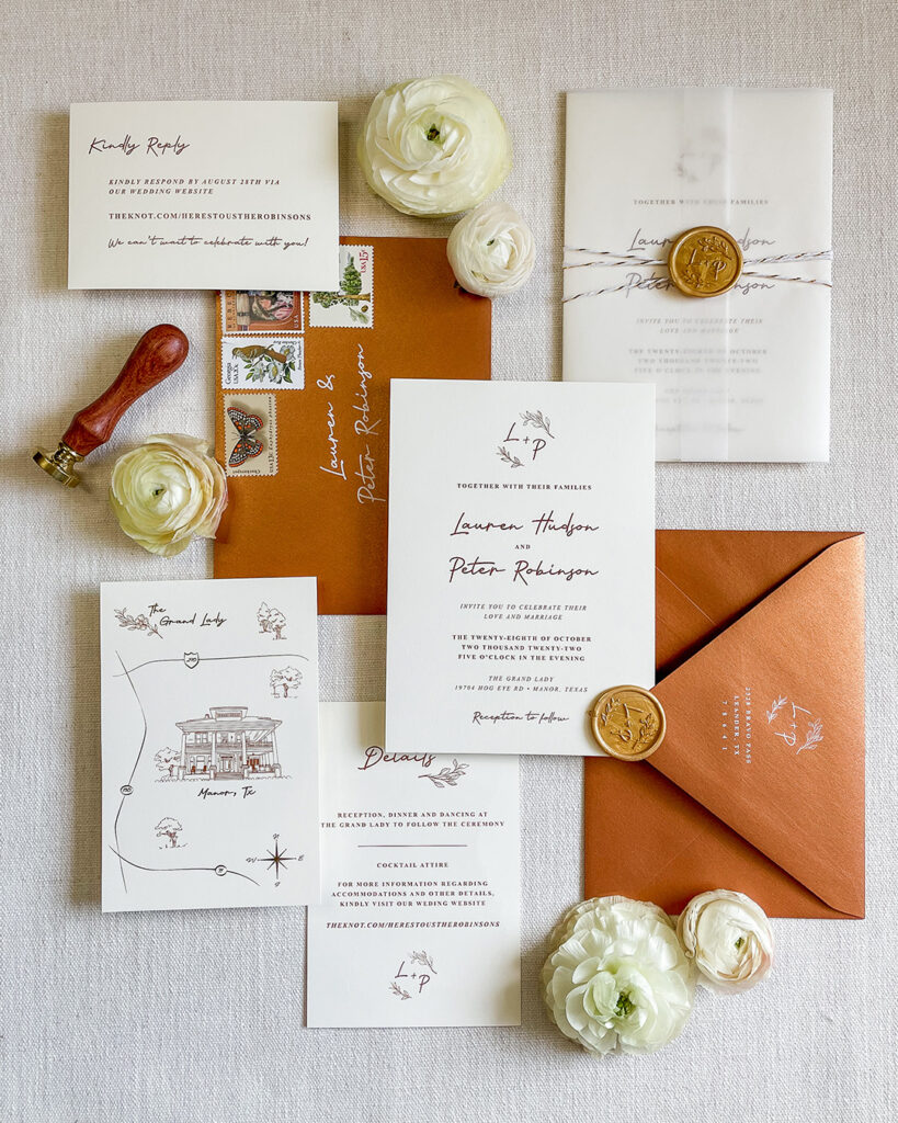 Kristen&Creative couples typically invest a minimum of $2,000 for a custom invitation suite of ~100 recipients